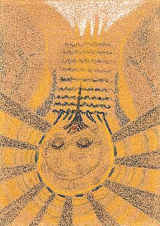 1. It usually happened when in sitting meditation: a shiver of both cold and warmth, an erupting delight, trembles, vibrations and shaking emerged from the base of the spine and made their way upward. It is an orgiastic experience, the discharge of a current of energy which provides infinite delight. There is no telling whether it is hot or cold. It is both. The body is burned up and cleansed at the same time. One's awareness is at the border of blissful downfall. It is sooner accompanied by panting, groaning, calling out and orgiastic screaming. 2. As it rises upward along the spine there is a shaking and shivering and when it reaches the head, which may happen very quickly or even at the same moment, the corners of the mouth and eyes may at first turn completely upward and the latter then open up wide, as much on the left as on the right. The head then joins in waves of violent trembling and shaking, an ecstatic frenzy. Everything has now been turned upside down and nothing remains of the original posture. Once the "typhoon" has passed, complete awareness has usually been reinstated, an awareness which was never entirely gone, a straight back, a relaxed posture with the unfocussed gaze against the back of the eyelids followed by a profound sense of peace and relaxation. 3. When awareness and the straight posture once again completely coincide and one is above all conscious of the centre of the lowermost part of the spine, there often proves to be additional energy which then contracts in a circle on the crown of the head. In this state a contracted, forceful field of energy is sealed off from the rest of the roof of the skull. It is a centre of aware presence from which everything is viewed. All that was beneath it has now been released and has become completely transparent, open and free. 4. Basically, two things may now happen. The complete relaxation of one's body coupled with the intensely clear awareness of the centre of the lowermost part of the spine - the centre of the imaginary axis of the "hollow bamboo" - and the relaxed opening and widening of both eyes whereby the "hollow bamboo" diametrically widens - will once again spark off the fire reflex. The repeating of this a second, third or numerous times may result in such upward vehemence that there is an eruption extending to even above the head of exploding, lightning and totally dissolving ecstatic orgasms, moments in which one ceases to exist. 5. Or else the field of contracted energy and upper awareness may gradually dissolve without the generating of new upward-flowing energy. From clear awareness the ebbing-away yields an extremely subtle inner bliss. At a certain point the head then starts leaning forward and the mouth and eyes become smaller, contracted and slightly pursed. The head together with the shoulders slowly moves forward and the current of energy flows downward from the mouth, throat and chest to the abdomen. The forceful breathing out through the mouth is often accompanied by hissing sounds like those of a snake or "dragon". The hissing is an overall event of enjoying the force available which originates from the abdomen. 6. Once it is over, one is clearly aware of the course of breathing in the abdomen which is deep down, completely relaxed, free and minimal. This then is the end of the kundalini-cycle. In most instances I thankfully fall forward or find myself having spontaneously touched the ground with my forehead. 7. I then experience myself from another center of consciousness. In it there is space coupled with freedom, clarity, equanimity and directness. A state transcending happiness and unhappiness with nothing interfering. Neither thoughts nor feelings ripple the surface of the water. Nothing from either within or without can disturb the inner peace. Everything goes without saying. No need to add to this state, to interpret, comment on it nor judge it. Eventually it is a complete peace free of the urge to do anything. There were daily experiences which lasted at least one and a half years. | HOME | The Grail Vision | The