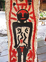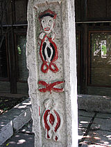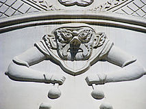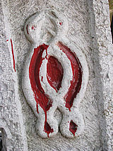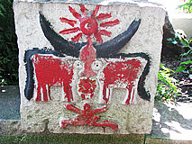 of Her - left and right - are Her Beasts (two buffalo's). On top Her crescent Moon with