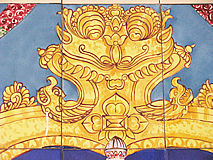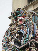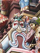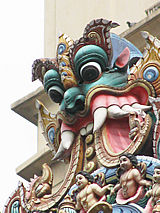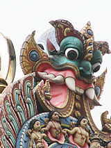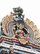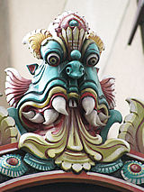 ORIGINS For more than tens of thousands of years the Cosmic Mother was worshipped by all She was perceived as Great Dark (Night), the Womb, the Waters (Ocean), The Cosmic Egg... Later She got an anthropomorphic image: Kybele, Isis, Inanna, Ishtar, Asherah... Later She "delegated" some "functions" to Her Daughters (Goddesses) and Sons (Gods)... Eventually She ("Tiamat") lost Her Power, and was destroyed by the patriarchal God Marduk Ever since She became demonized, pictured like a evil dragon or monster. The Gods(Goddesses) of the past are the Demons of today Every religion degrades the previous Deities into Demons e.g. Guardians.. Unfortunately, this also happened to the Cosmic Mother Examples are "Demons", Kirtimukha's and Kala's (Mahakala's!). So, that's how we meet Her in temples, churches, sacred places, sanctuaries... Pay Her respect with the eyes of compassion through looking beyond Her ugliness Deep down Her Beauty is immeasurable! COMMENT In later ages patriarchy re-introduced the Goddess, knowing that the people would otherwise revolt In Hinduism the Primordial Mother was turned into a "integrated" Deity. She became the consort (shakti) of Shiva (instead of Shiva being Her Son/Lover!), in Buddhism Kuan Yin replaced WuShenglaoMu and in Christianity the Virgin Mary became the substitute of the ancient Magna Mater Through its multi-facetted character only Hinduism preserved memories of pre-Vedic times, though, like Lajja Gauri, Aditi, Durga, Kali and....Meenakshi TAMIL NADU TEMPLE TOUR 2014 Trichy Sri Maha Mariamman