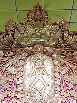 ORIGINS For more than tens of thousands of years the Cosmic Mother was worshipped by all She was perceived as Great Dark (Night), the Womb, the Waters (Ocean), The Cosmic Egg... Later She got an anthropomorphic image: Kybele, Isis, Inanna, Ishtar, Asherah... Later She "delegated" some "functions" to Her Daughters (Goddesses) and Sons (Gods)... Eventually She ("Tiamat") lost Her Power, and was destroyed by the patriarchal God Marduk Ever since She became demonized, pictured like a evil dragon or monster. The Gods(Goddesses) of the past are the Demons of today Every religion degrades the previous Deities into Demons e.g. Guardians.. Unfortunately, this also happened to the Cosmic Mother Examples are "Demons", Kirtimukha's and Kala's (Mahakala's!). So, that's how we meet Her in temples, churches, sacred places, sanctuaries... Pay Her respect with the eyes of compassion through looking beyond Her ugliness Deep down Her Beauty is immeasurable! COMMENT In later ages patriarchy re-introduced the Goddess, knowing that the people would otherwise revolt In Hinduism the Primordial Mother was turned into a "integrated" Deity. She became the consort (shakti) of Shiva (instead of Shiva being Her Son/Lover!), in Buddhism Kuan Yin replaced WuShenglaoMu and in Christianity the Virgin Mary became the substitute of the ancient Magna Mater Through its multi-facetted character only Hinduism preserved memories of pre-Vedic times, though, like Lajja Gauri, Aditi, Durga, Kali and....Meenakshi The miracle: In 1977 the Cosmic Mother revealed Herself once again, after many millennia. She has got a new image, together with Her manifestation: the Black Madonna. (See "Cosmic Mother Healing Shrine" in "Agenda") TAMIL NADU TEMPLE TOUR 2014 Trichy Sri Maha Mariamman