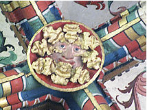 Kopf mit MutterSymbol und Hörner des Überflußes