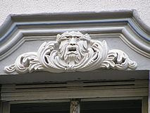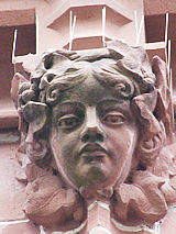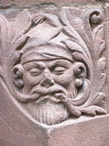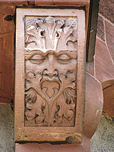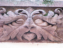 Löwe und Grüner Mann in einem. Da der Löwe (oft) ein
