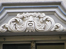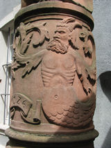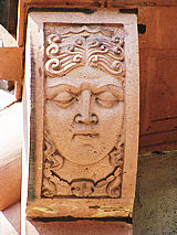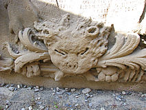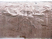 Rechts unten ein in Stein gehauener