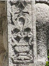 top on both sides two very beautiful masks, most likely a mixture of a River God and a