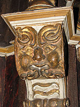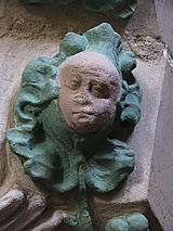 dekoriert mit vier holzgeschnittenen Grünen Männern, während die christliche Heiligen