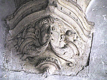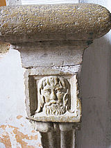 Einerseits wollten die Templer ihrem Glauben nicht untreu sein, andererseits war es auch nicht so, daß sie unnötige Risiken eingehen wollten....Dies hier ist ihr Trick. Der Korridor zum Speisesaal ist so dunkel, daß man kaum etwas sehen kann. In der Wand wurden dort also die Templersymbole angebracht: verschiedene eindrucksvolle Köpfe. Jeder Templer wußte daß sie da waren, konnten also beim hineingehen des Speisesaals nochmal kurz an sie denken; die Gäste jedoch waren ahnungslos...