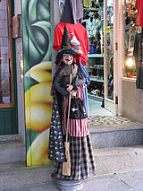 dressed up to the nines at the front side of the church, together with a Green Beast/Man